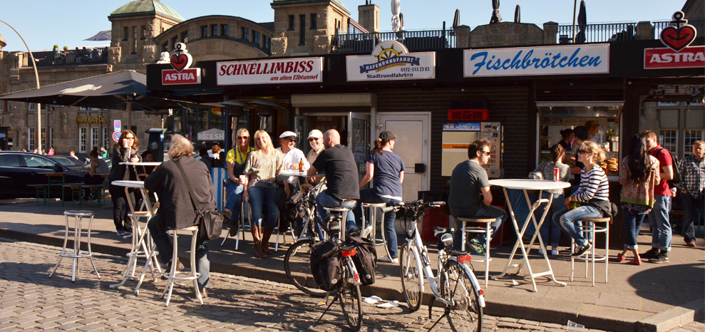 Die besten Fischbrötchen gibt es im Imbiss am Alten Elbtunnel (das behaupten viele Kunden).